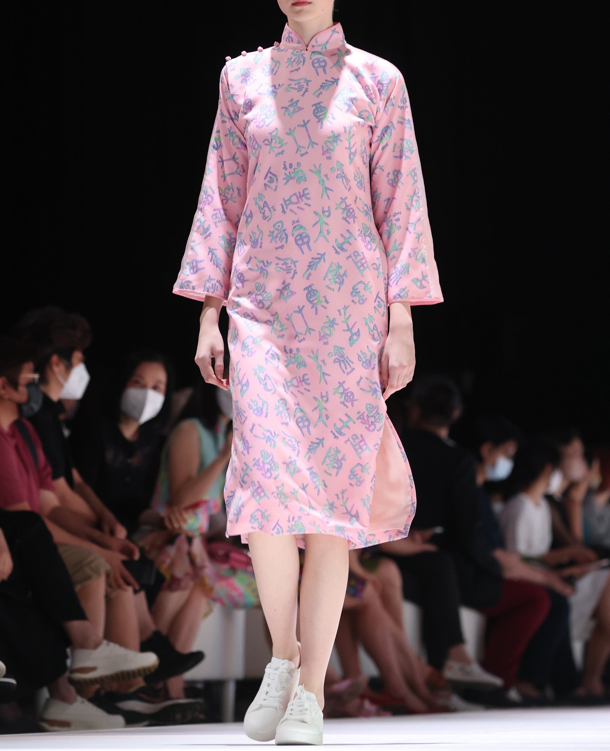 Step into a world of tradition and style with the Pink Ancient Chinese Character Cheongsam. This unique piece features an eye-catching design adorned with ancient Chinese characters, set against a soft pink background that radiates charm.