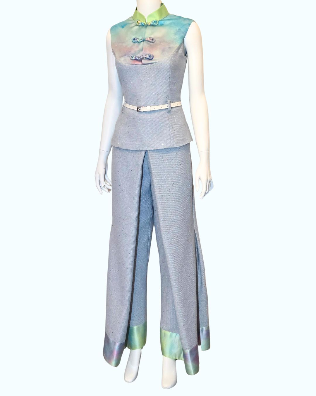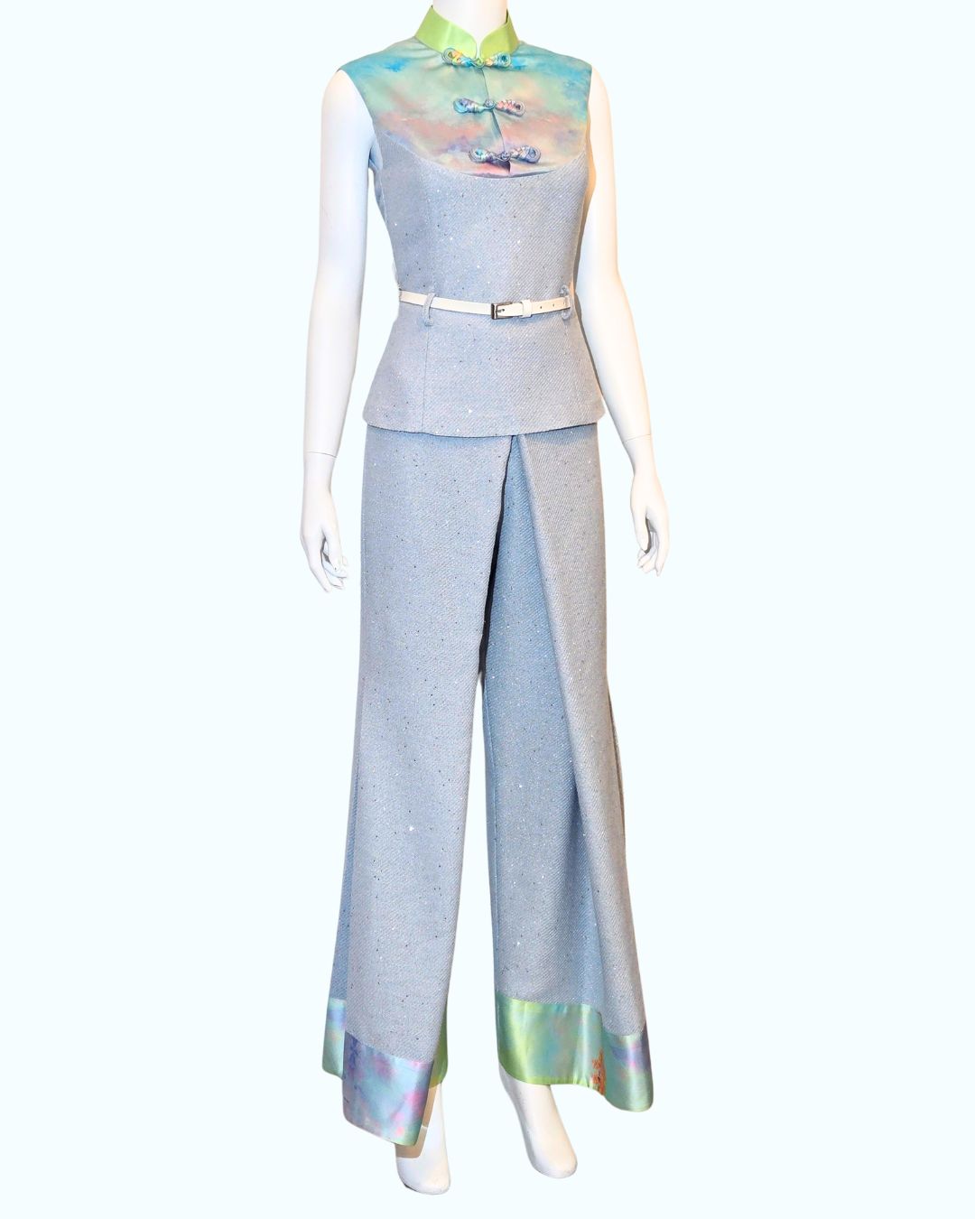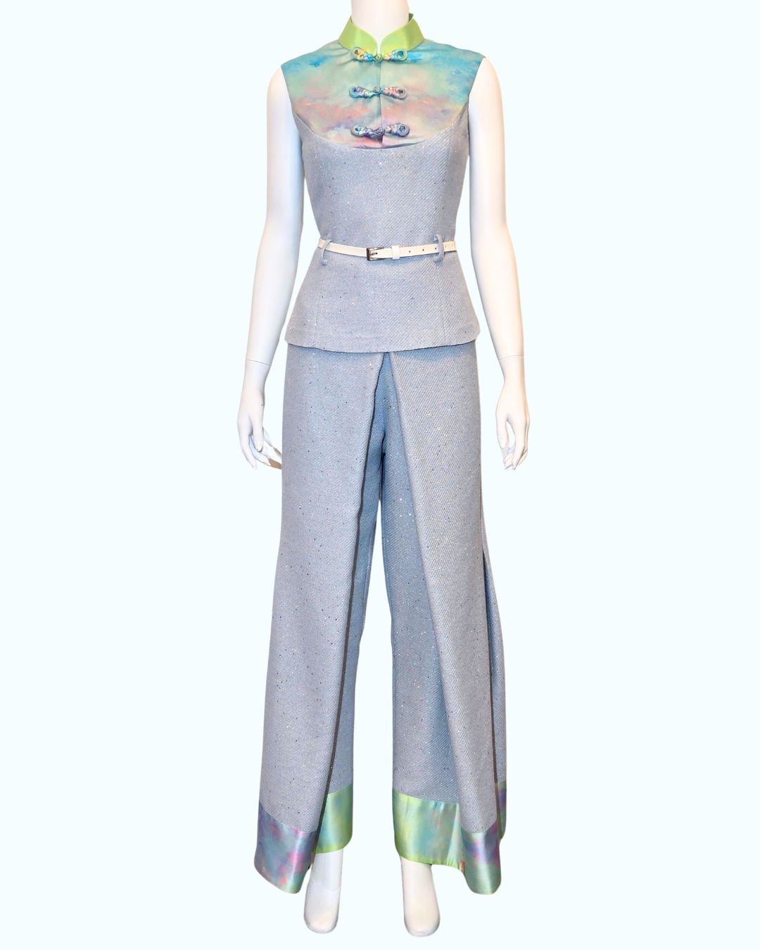 Baby Sequin Tweed with Sky Painting Print + Pleated Wide Leg Pants