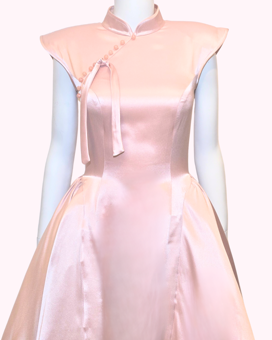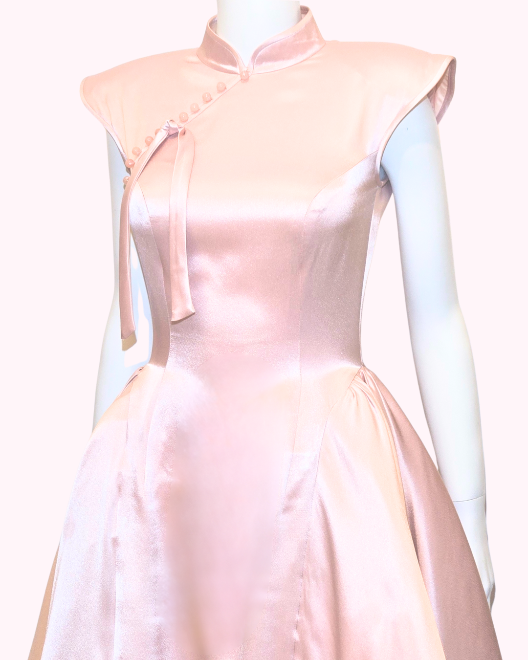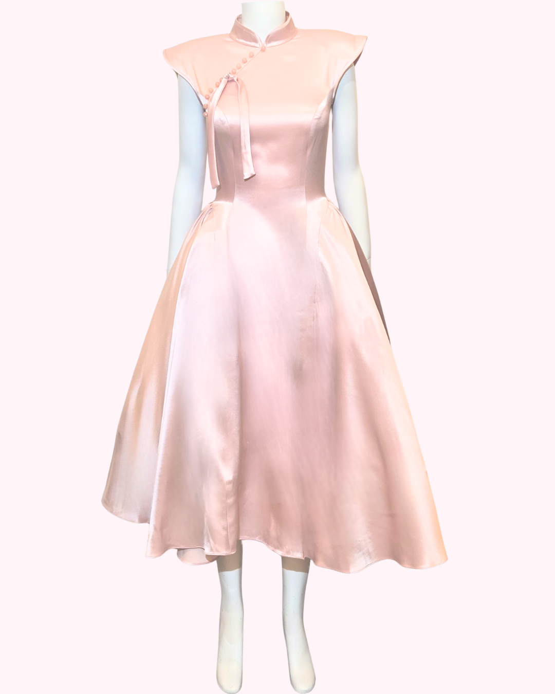 Embrace classic elegance with the Dust Rose Panier Cheongsam. This beautifully crafted piece features a soft dust rose satin finish that radiates sophistication.