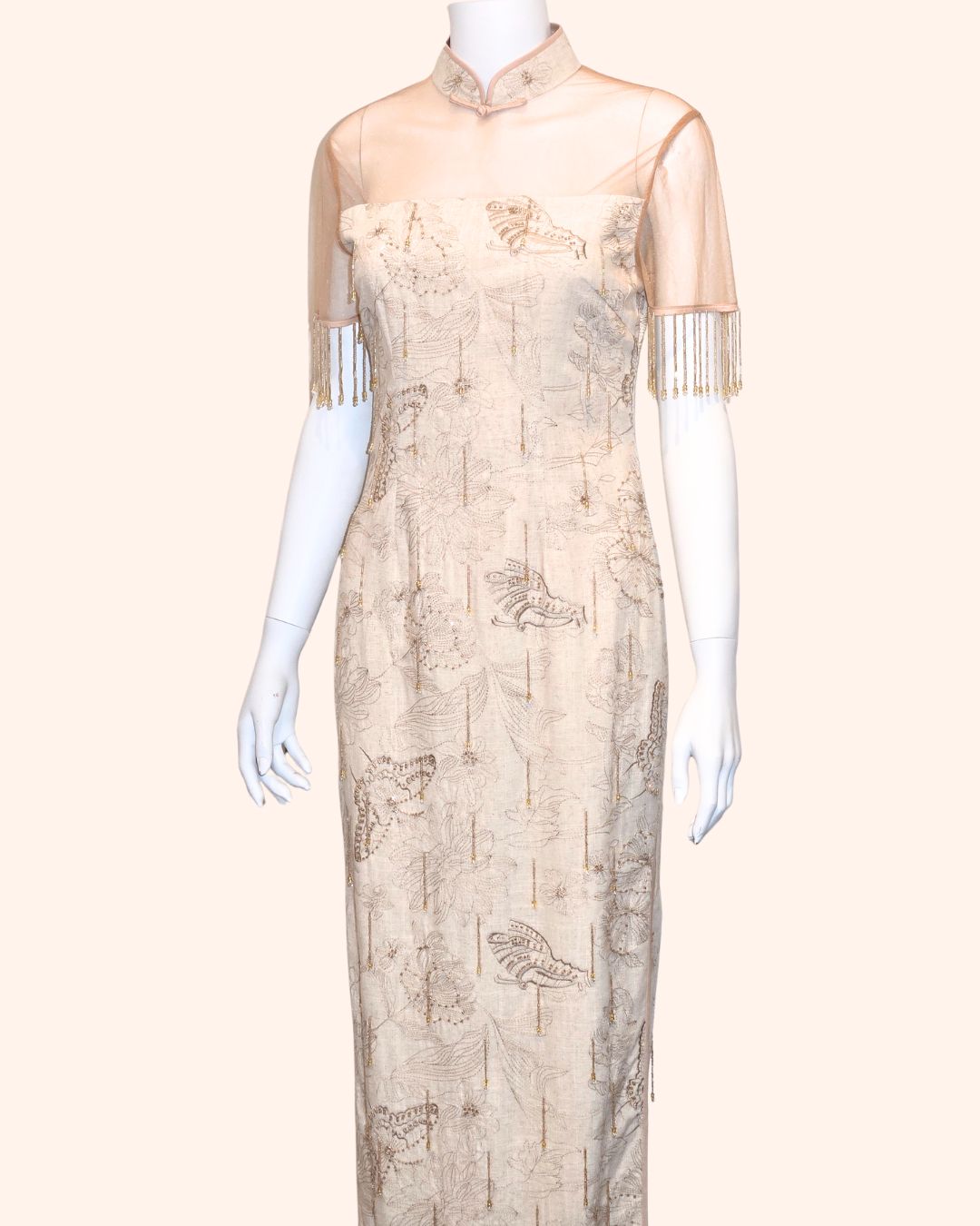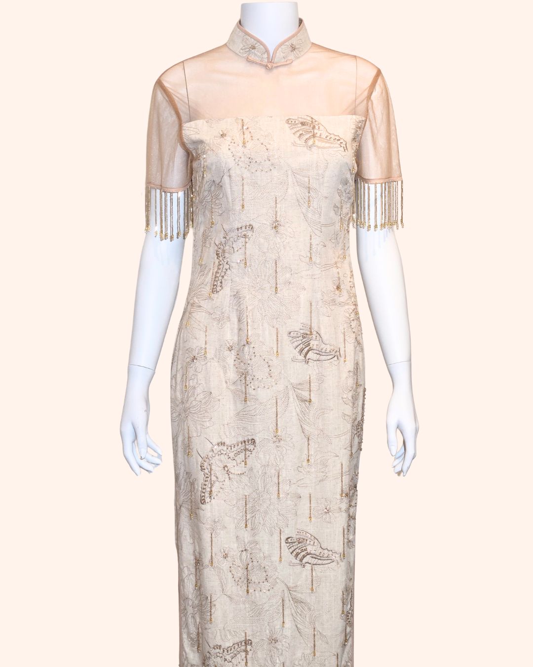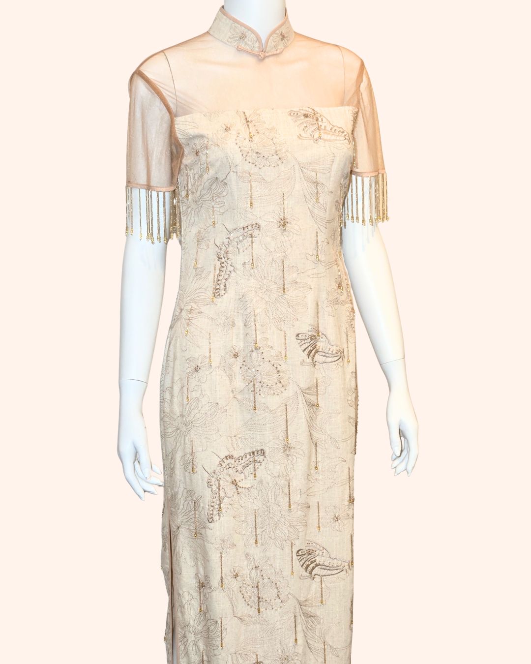 Golden Hand-Beaded Fringe Cheongsam