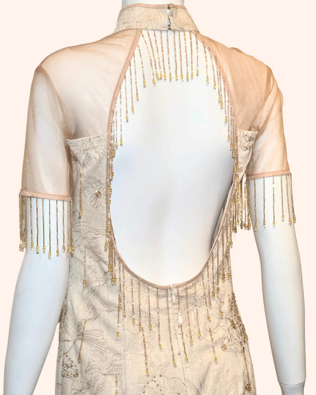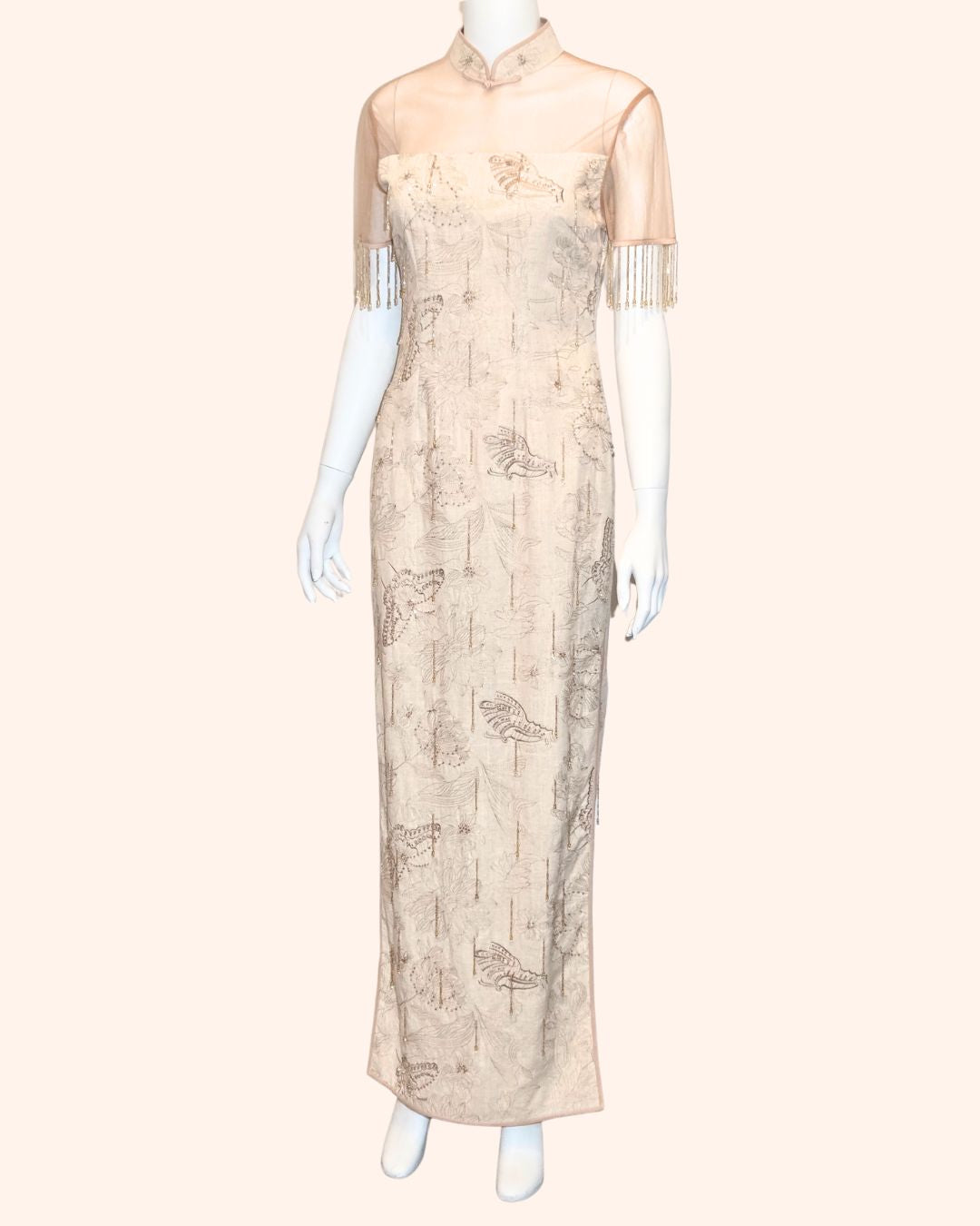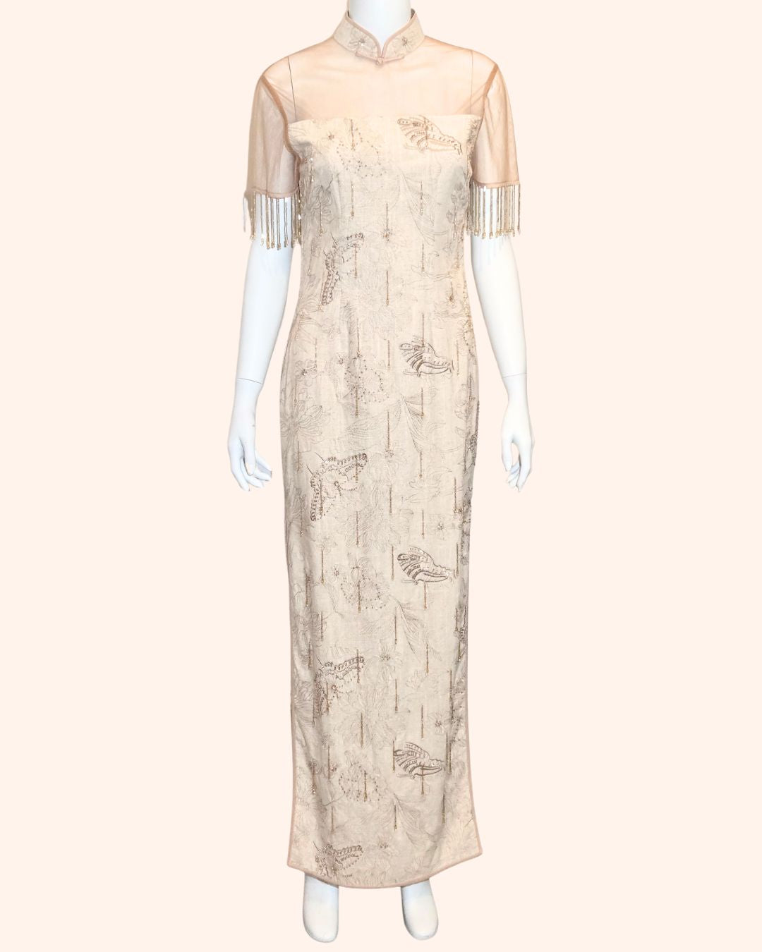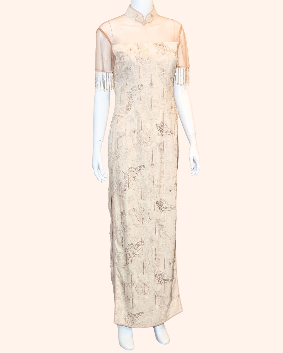 Golden Hand-Beaded Fringe Cheongsam