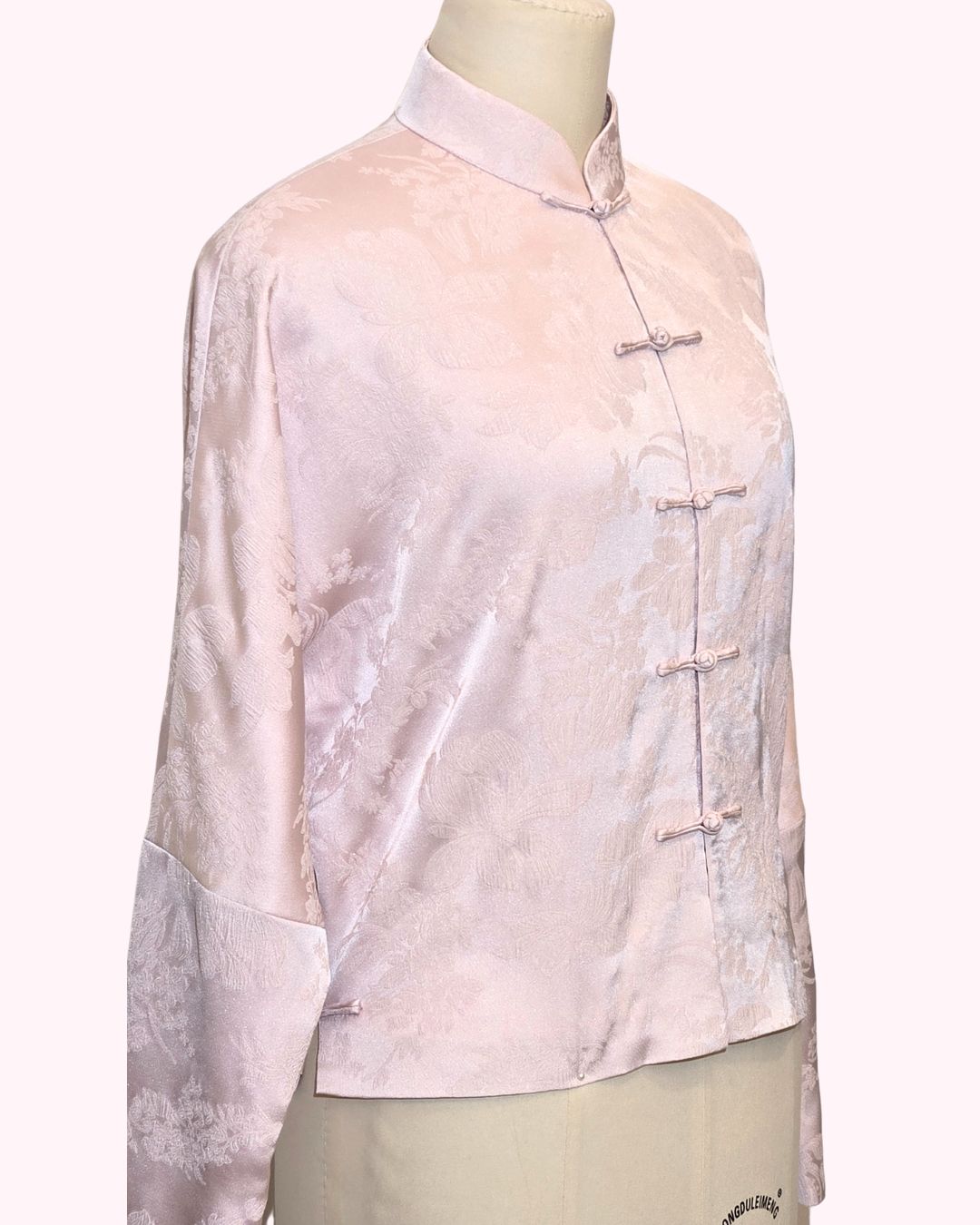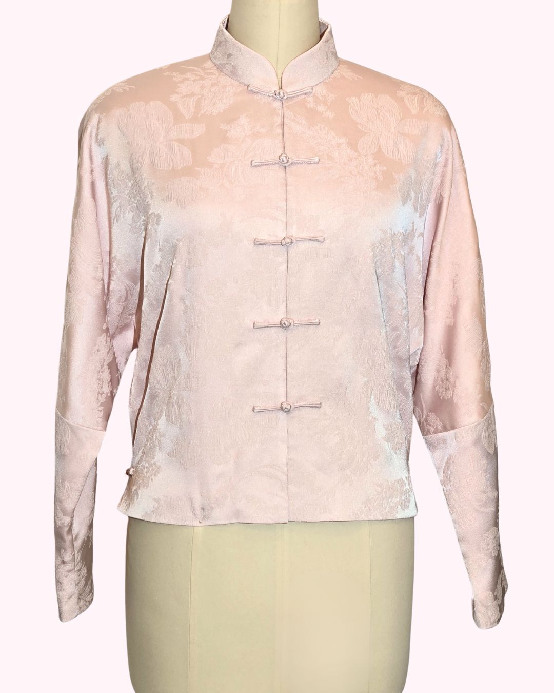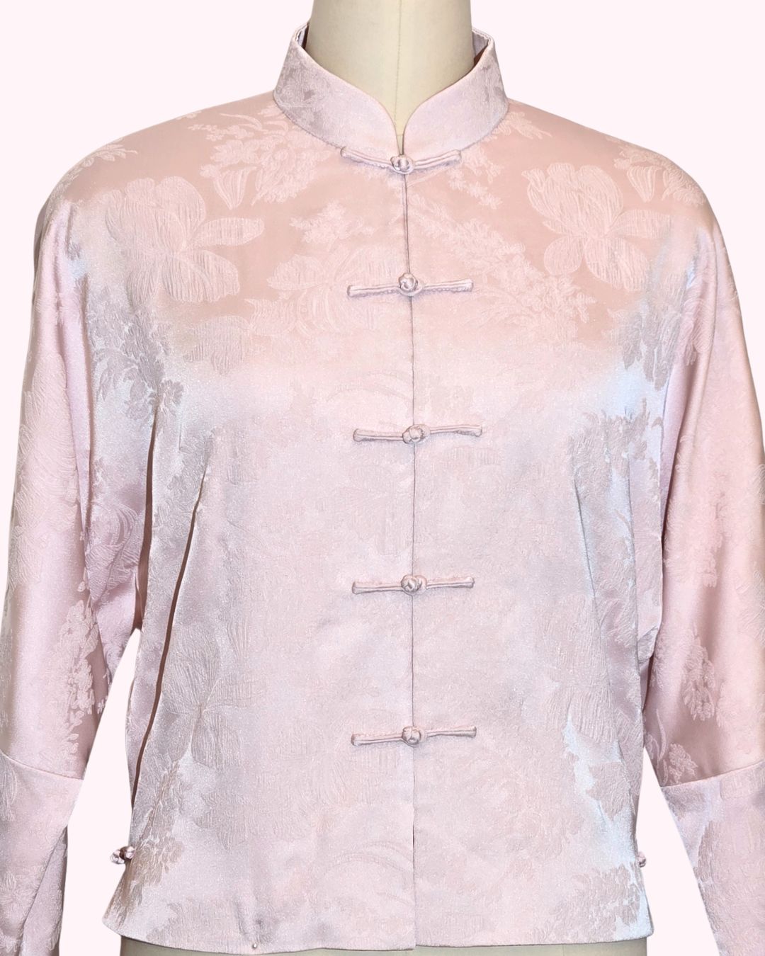 Embrace elegance with our Light Pink Cheongsam Jacket. Adorned with subtle floral patterns and traditional frog closures, this jacket offers a timeless silhouette. Perfect for layering, it enhances any outfit with a touch of sophistication, making it ideal for both special occasions and casual wear. A must-have addition to your wardrobe!