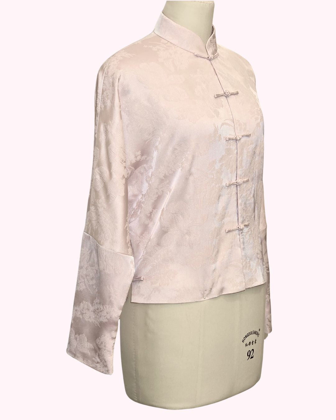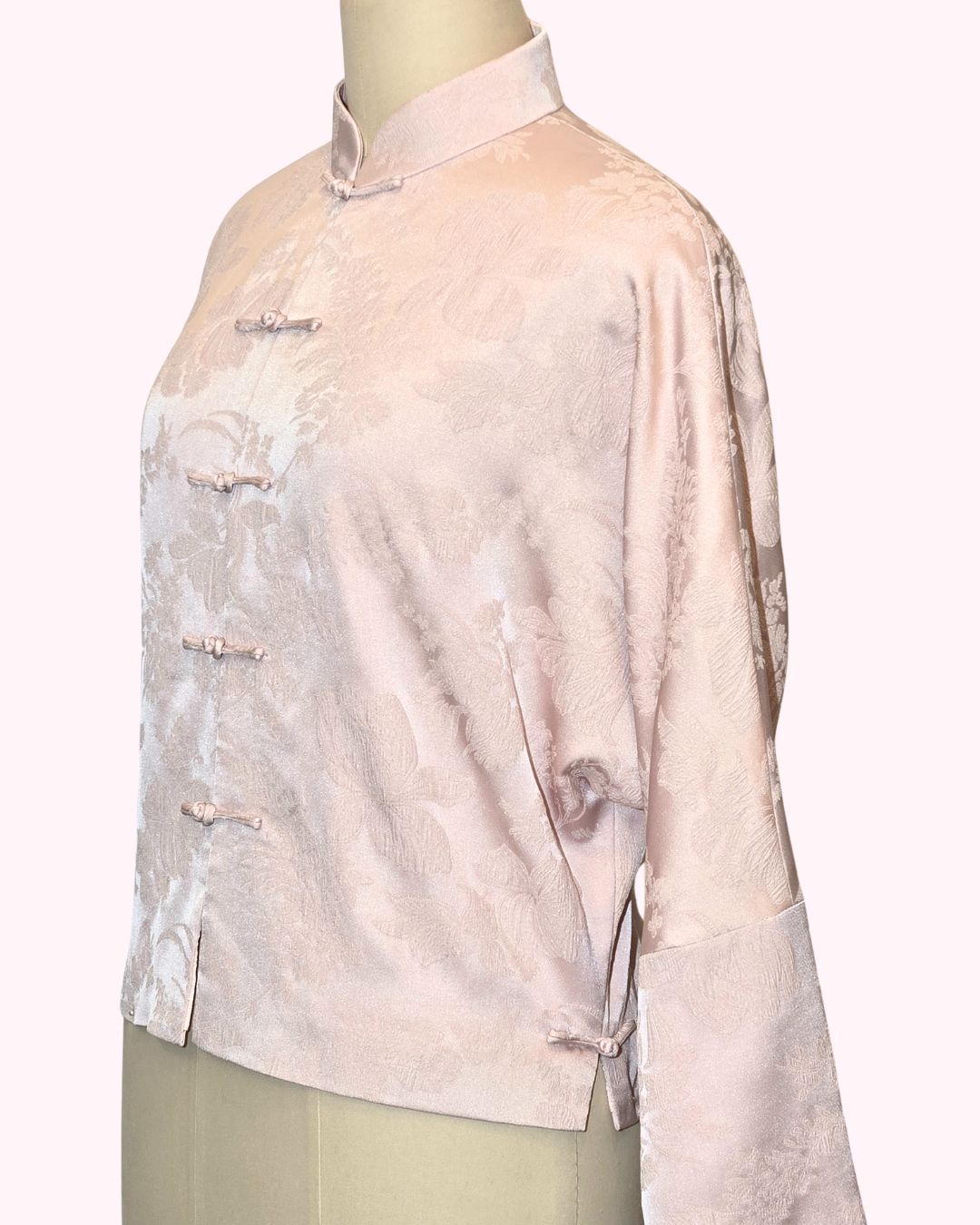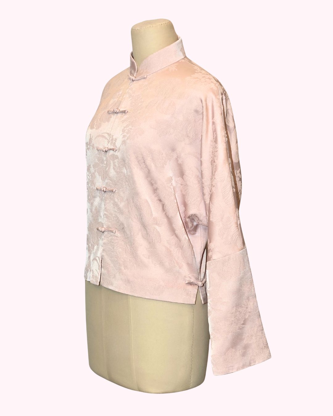 Embrace elegance with our Light Pink Cheongsam Jacket. Adorned with subtle floral patterns and traditional frog closures, this jacket offers a timeless silhouette. Perfect for layering, it enhances any outfit with a touch of sophistication, making it ideal for both special occasions and casual wear. A must-have addition to your wardrobe!