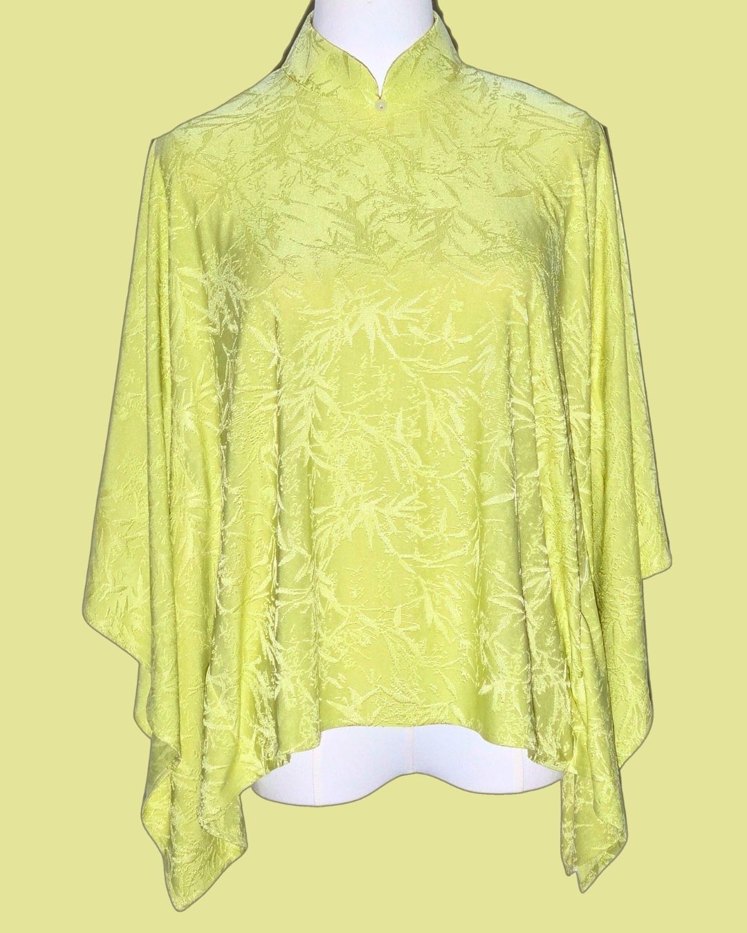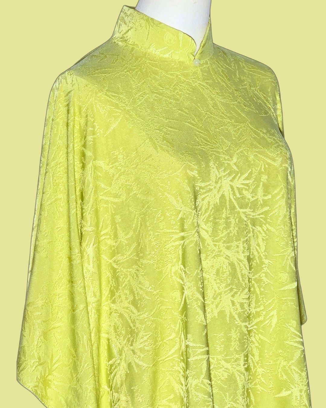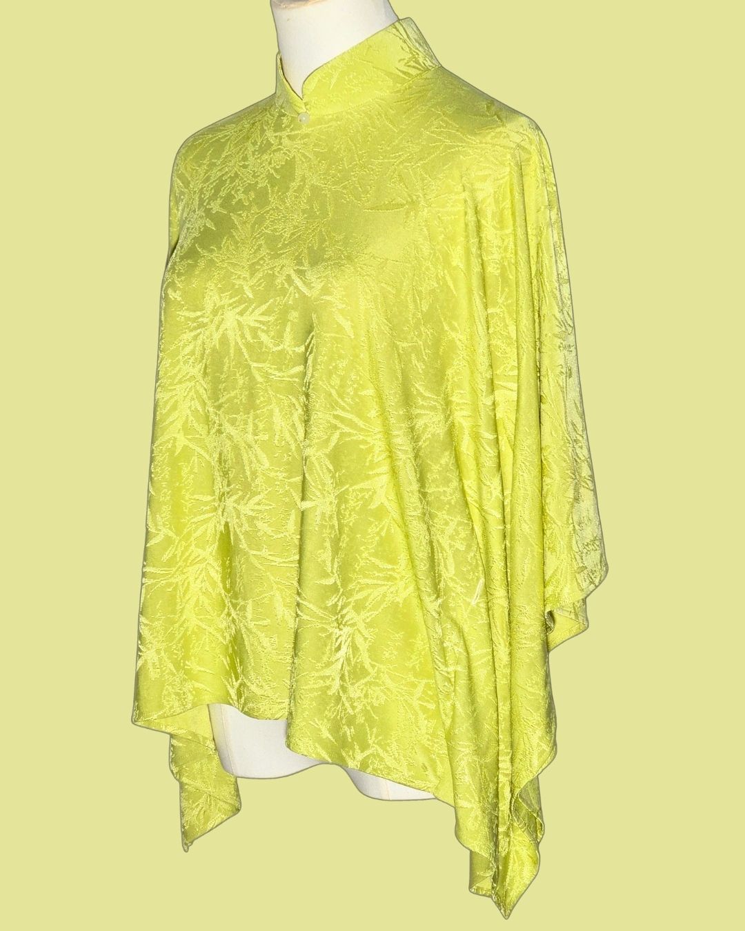 The Lime Green Floral Cheongsam Cape is a vibrant and versatile addition to any wardrobe. Crafted from soft, flowing fabric, it features an eye-catching floral pattern that adds a touch of elegance. The cape design offers a relaxed fit, making it perfect for layering over various outfits. Ideal for both casual and formal occasions, this piece effortlessly combines comfort and style, allowing you to express your individuality with flair.