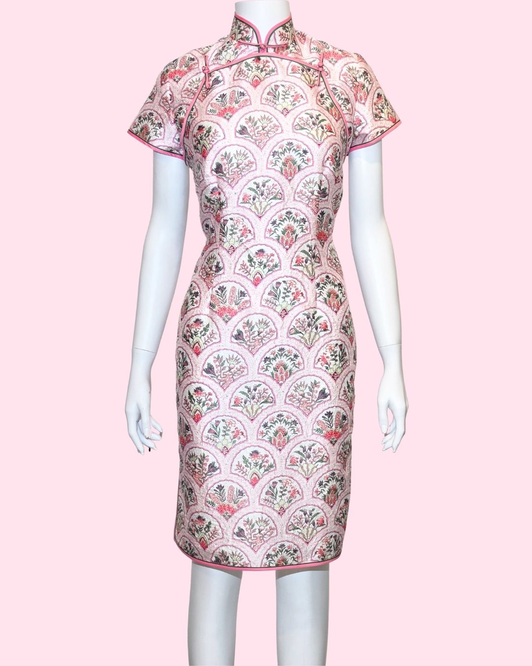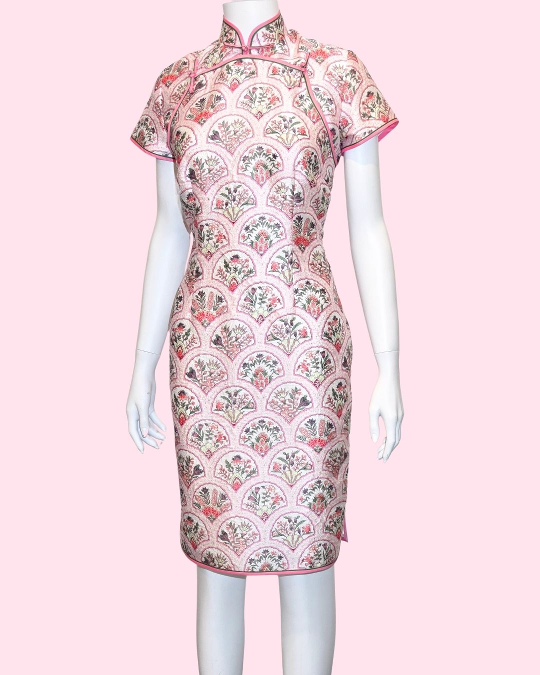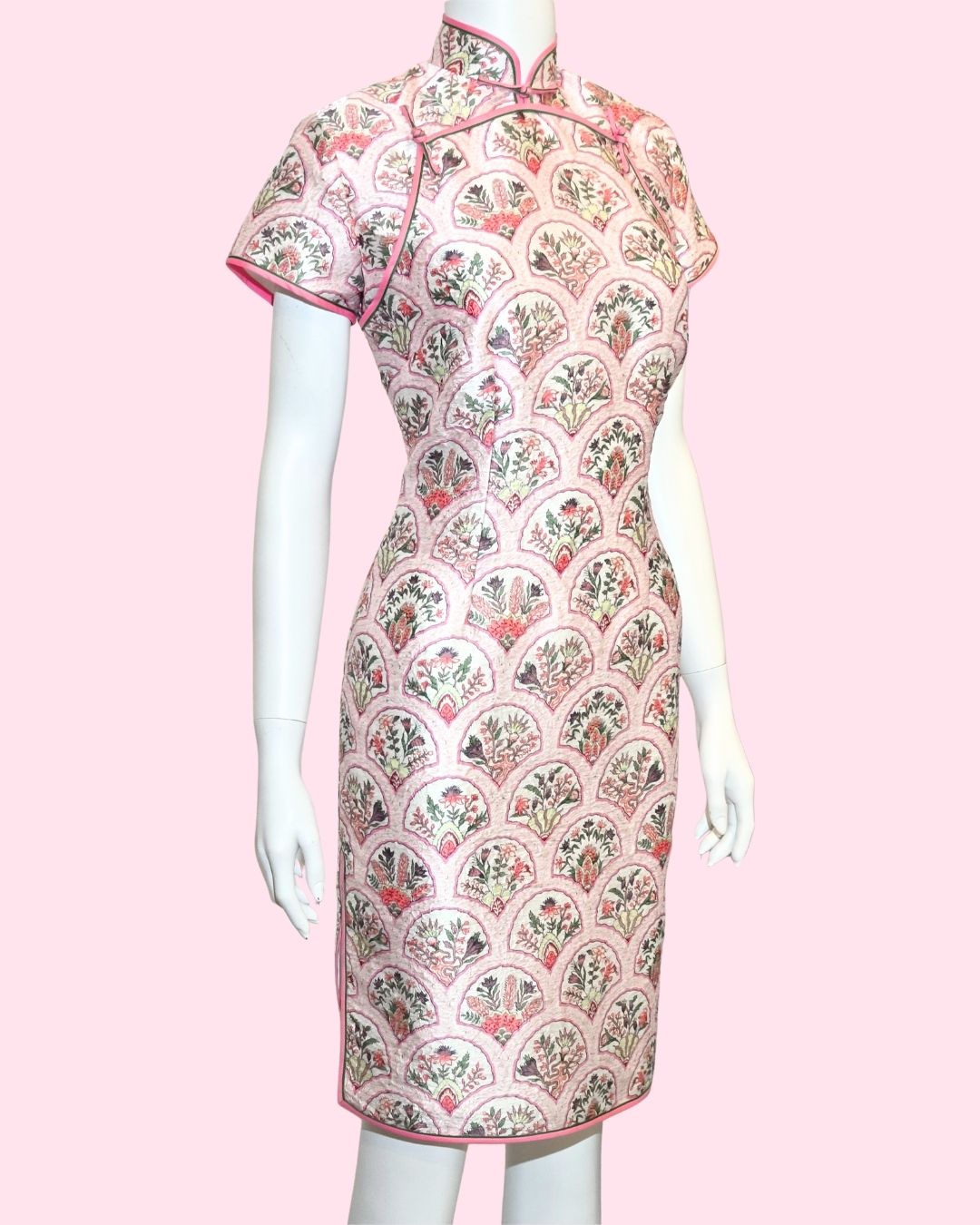 Step into elegance with the Pink Art Deco Cheongsam, a stunning piece that blends classic design with modern aesthetics. Featuring a beautiful art deco pattern in soft pink tones, this cheongsam exudes sophistication and charm.