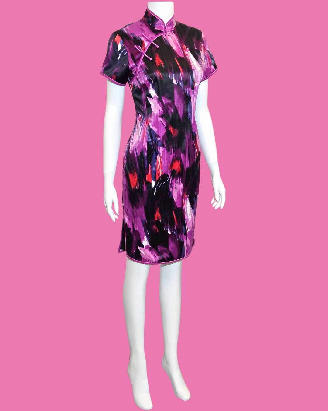 Purple and Red Brushstroke Cheongsam