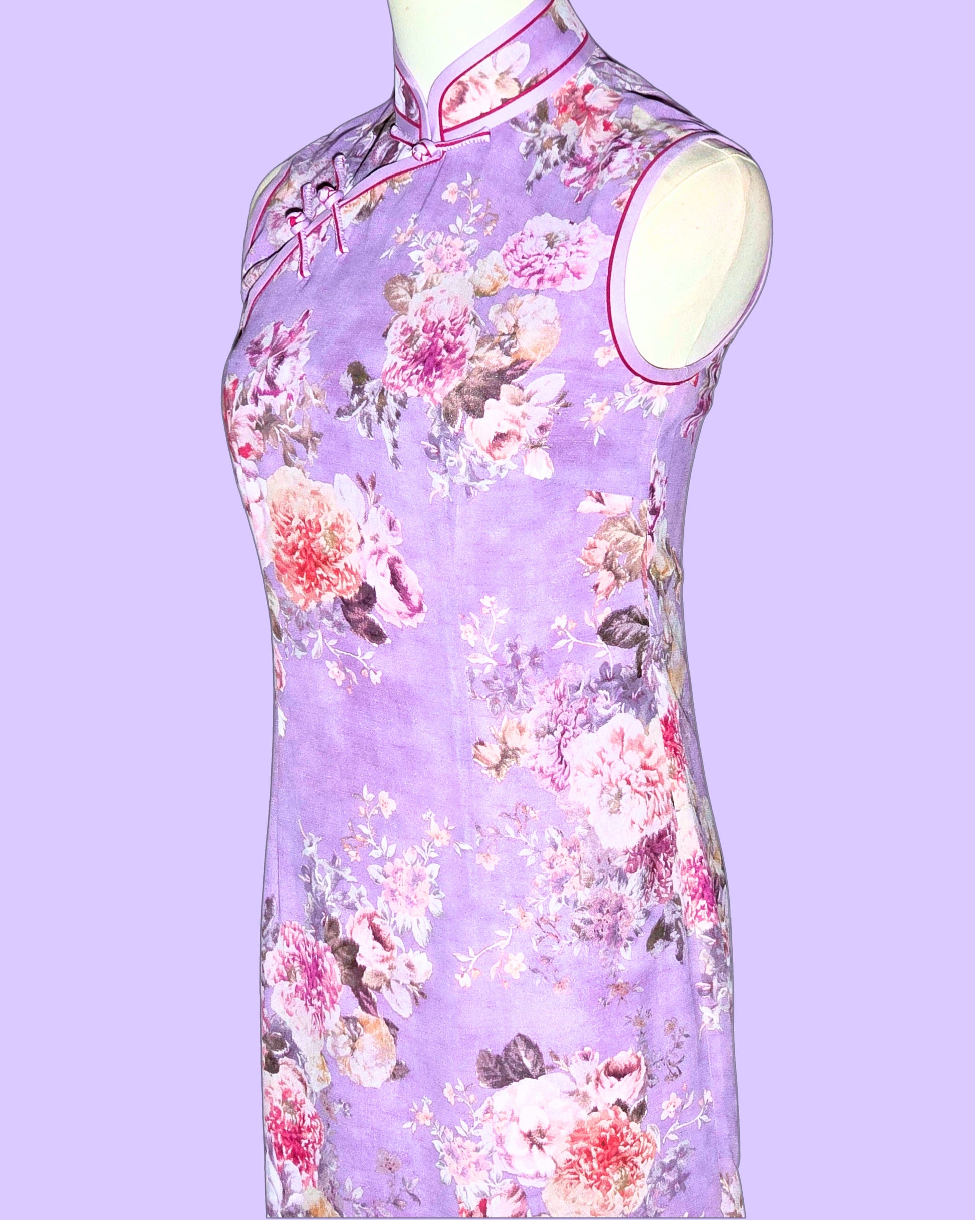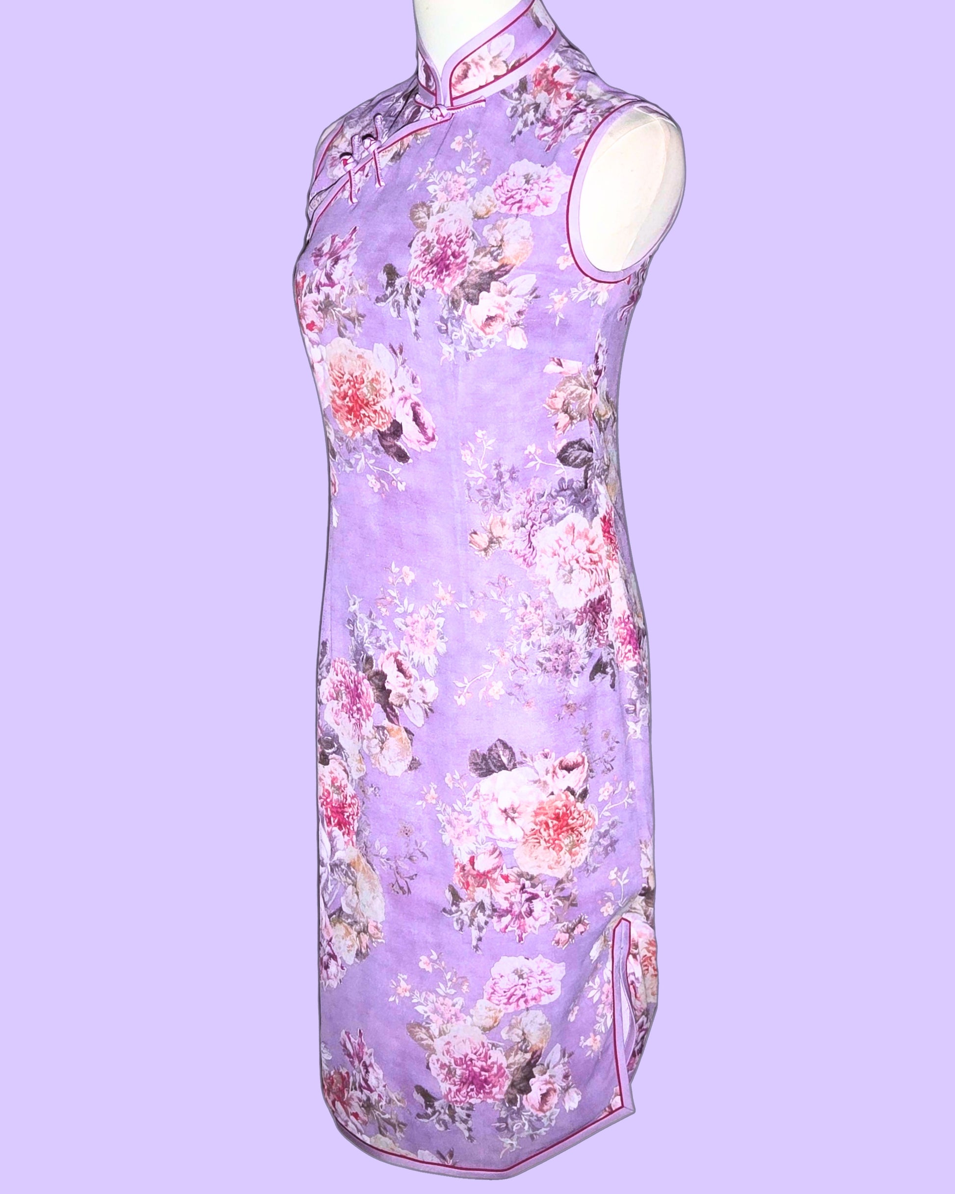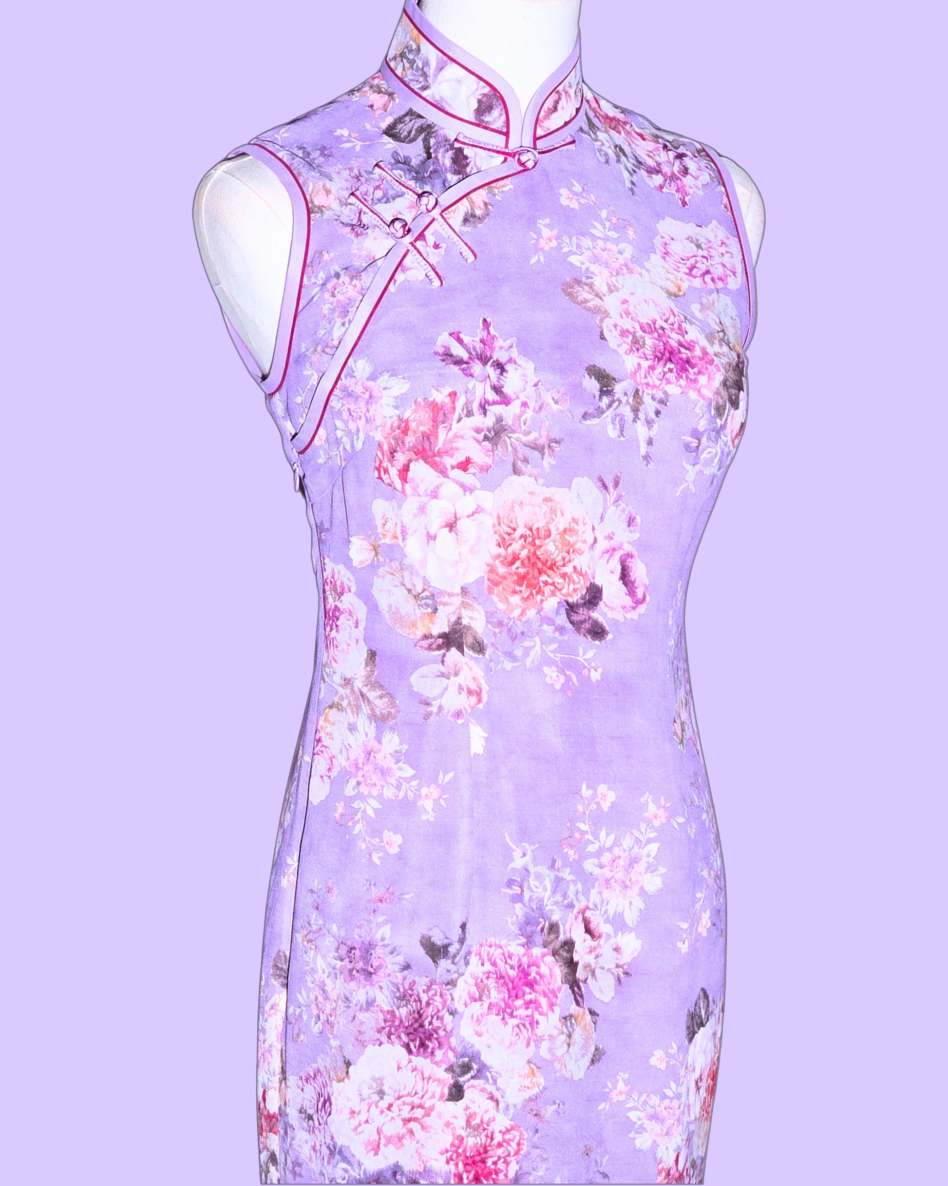 The Purple Floral Cheongsam is a delightful blend of femininity and elegance. Adorned with vibrant floral prints against a soft purple backdrop, this sleeveless design enhances the silhouette beautifully. The intricate detailing and graceful lines make it perfect for special occasions or casual outings. Celebrate your style and charm with this enchanting cheongsam that captures the essence of springtime beauty.